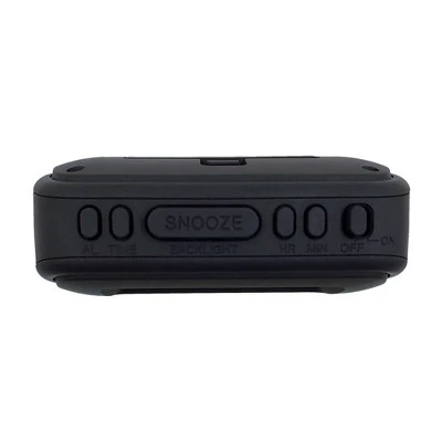 This compact SHARP alarm clock is ideal for saving space on your nightstand. The ascending alarm never startles you like traditional alarm clocks. It offers you a gentler wakeup experience. The alarm clock has a soft rubber finish making it difficult to knock over and just fun to touch! The button controls are easily accessible from the top of the alarm clock. You can easily illuminate the display with its blue backlight by pressing the snooze button. the display will light up for 5 seconds and turn off to extend your battery life.