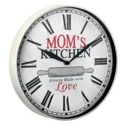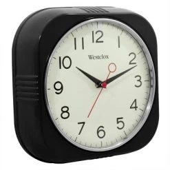 Beautifully crafted Westclox 12” kitchen retro wall clock features a deep 2” frame with raised retro details. The easy to read dial with detailed red seconds hand make this a functional and attractive classic timepiece. Great for kitchens! Quality quartz movement ensures perfect time accuracy. Requires one AA battery to operate. Proudly made by Westclox, with a 1 year limited warranty.