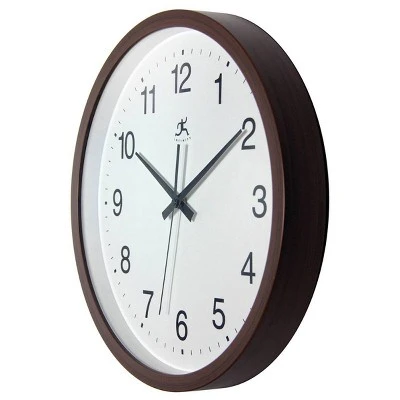 Featuring a simple classic design, the Walnut Finish wall clock is perfect for the office, dorm room or other space that needs a functional and basic time piece. This indoor wall clock features a walnut finish case, glass lens as well as a second hand. With its plain white face and black hands, this clock can easily be read anywhere it hangs. Additionally, the Walnut Finish wall clock features silent movement for peace & quiet. At 14β, this indoor wall clock is the perfect size for offices, schools and dorm rooms.