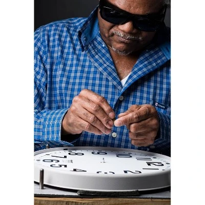 Made in the USA by people who are blind. Comes in a 14.5 inch Contemporary design body. High quality quartz movement to ensure accuracy and long life. Clock bodies are made using 30% post-consumer recycled materials with a Shatter resistant lens. This clock helps to provide meaningful employment for people who are blind. They assemble them with quality and pride. All proceeds benefit The Chicago Lighthouse, a social service organization providing services for people who are blind, visually impaired, disabled and Veterans.