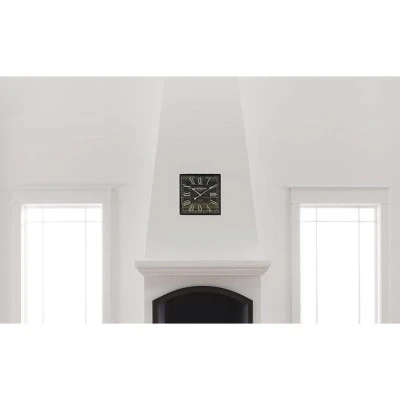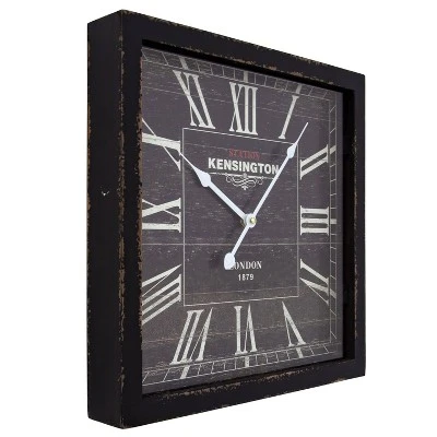 Never lose track of time again when you have this sleek, sophisticated Yosemite Square MDF Wall Clock in your home. Made of sturdy hardwood, this square black clock has a slightly distressed face and a braid-detail MDF frame. White roman numerals and hands pop from this wall clock, making it easy to read. This quartz clock coordinates well with all types of décor, providing the perfect elegant touch in any room.