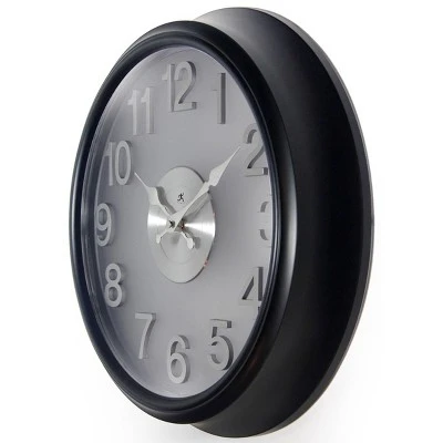 The Onyx is a decorative indoor wall clock that features bold modern design. This 15” indoor wall clock features a sleek black finish case and glass lens. The standout feature of this attractive indoor wall clock is its silver clock face, matching hands and raised silver numerals. No matter where the Onyx hangs in your home, you can easily tell the time. This clock also features quartz movement for accurate time keeping.
