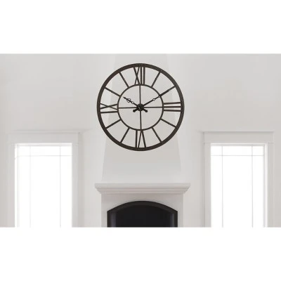 The clock that never competes with your paint color, wallpaper or stone clad fireplace. The wall can be seen through the open framed design. It is all metal in a rust finish with stately Roman numerals and arrow point hands. This item can easiley be an eye catcher and the center of your rooms decor.