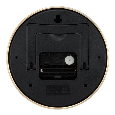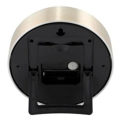 With this Round Wall Clock from Project 62â„¢, you’ll bring in the cool modern look you’re going for. This small round analog clock has a sleek, streamlined look with a metal case in a shiny brushed brass finish topped off with easy-to-read numerals and a clean dial. A great addition to any room, this clock offers a chic way to stay on schedule. Plus, it can be either be set on a table using the integrated, foldable easel or hung on a wall by its keyhole.