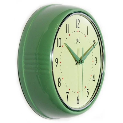 The Retro Round Green Wall Clock’s stunning green frame and unique retro design sets it apart from the rest. Infinity Instruments Retro Wall Clock collection has been a staple in the interior design/ wall décor accessories for well over a decade. It has proven the test of time with a clean retro look that fits most, if not all, home décor layouts. There have been many copy-cats but there is only one true Infinity Instruments Retro Aluminum Wall Clock.