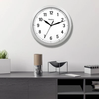 Westclox 9.75” Storage wall clock is an essential wall clock that fits with any décor while discreetly keeping your possessions safe. Hide your money, documents, credit cards, jewelry and more! Attractive Silver frame finish. Large numbers make it easy to read the time. Our quality quartz movement ensures perfect time accuracy. Requires one AA battery to operate (Not Included). Limited 1 Year Warranty.