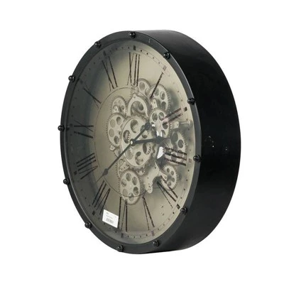 With exposed gears, Roman numerals, and an aged finish, this wall clock features all the details of a classic timepiece updated with urban industrial style. This striking clock fits perfectly above a living room mantle, in a master bedroom, or even as a stunning feature in a kitchen. The simplicity of the Roman Numeral Wall Clock makes it an impressively versatile piece for any home or office. This item belongs to a collection of items created and designed by A & B Home, Inc., a family owned business founded in 1993. A & B Home Inc. is recognized as an international leader specializing in quality products with innovative design for the home decor, furniture, garden, and seasonal product categories