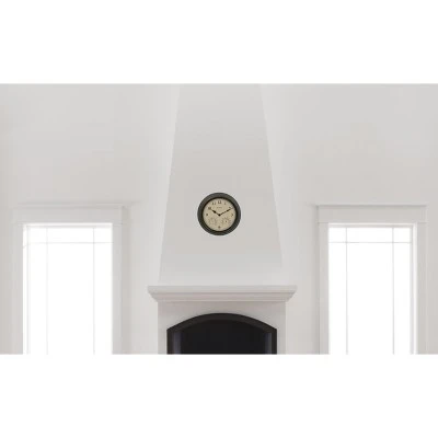 The AcuRite 15-inch outdoor or indoor clock features a built-in temperature sensor and humidity sensor (hygrometer) that allows you to check out your backyard, garden, or patio conditions at a glance. A quartz crystal (clock mechanism) movement provides reliable, accurate timekeeping, and the large, elegant Arabic numerals are easy to read from a distance. Thanks to this decorative wall clock’s durable, weather-resistant construction, it’s suitable for inside or outside, as it would look great as a kitchen clock, bedroom clock, or farmhouse wall clock. The integrated keyhole hanger on the back makes for easy wall mounting wherever you decide to hang this modern wall clock. An attractive, hand-painted, weathered finish makes this analog clock and thermometer/hygrometer combination the perfect decorative accent for your home, deck, or patio. This somewhat big wall clock requires one (1) AA battery (not included) and comes with a one-year limited warranty.