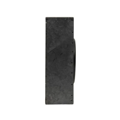 - Black washed galvanized metal finish offers a neutral and transitional display.