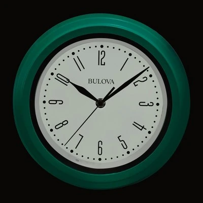 Give your room a splash of flair with The Darian Back Lit Modern Wall Clock by Bulova.Featuring a fully back lit for a highly visible and stylish look, this decorative wall clock adds class to any room it hangs in. Its matte silver inside accents and bright finish bring out mid century aesthetic that complements any kitchen or bathroom decor. Contrasting black hands and a no-tick silent sweep hand allow for clear and easy reading.With the accurate movement and precision Bulova clocks are known for, this clock simply requires 1 AA battery (not included) and 3 AA batteries for the backlight (also not included) to bring its functionality to your space. At a mid-sized 10 inch diameter and 1.75 inch depth, this clock brings vivid brightness to your space without being so large as to overpower your wall or other decorations.For a classic look with flair, the Darian Back Lit Wall Clock by Bulova is the hanging timepiece that will brighten your space.