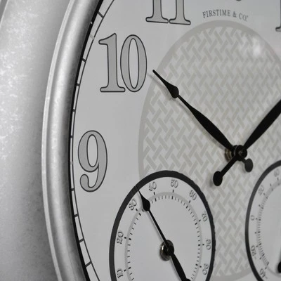 Enjoy your outdoor living space day or night with the FirsTime & Co. Radiant LED Outdoor Clock. Its innovative LED technology senses low light levels and automatically illuminates to create a soft glow at dusk. The numbers and basketweave pattern light up to make this all-in-one weather station a useful addition to your decor, while the galvanized frame adds farmhouse charm.