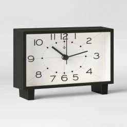 Add style and function to your desk, table or other work station with this Analog Tabletop Clock from Hearth & Handâ„¢ with Magnolia. Featuring a textured black frame for a sleek look, this analog tabletop clock brings eye-catching appeal to your room decor. The simple analog clock features an off-white face with easy-to-read numerals in black, so it’s easy to tell the time whether you’re getting ready for work or simply getting up for your daily morning walk.
