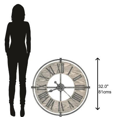- Aged Iron Wall Clock: With beautiful materials pulling together to create this large wall clock, the Eli makes for a stunning piece. This clock features brushed aged-silver finished wrought iron and a wood veneered numeral ring finished in a warm gray. This iron wall clock has a natural, elemental style.
