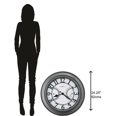 - Accent your patio or deck with the Tawney outdoor wall clock from Howard Miller. This elegant timepiece not only tells time but displays the temperature and humidity.
