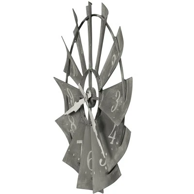 - Antique Styling: This oversized windmill style metal wall clock features an antique brownish charcoal finish and significantly aged white hour and minute hands. Together all of these tiny details work to create a unique aged look. This metal wall clock is the perfect addition to any farmhouse style collection.