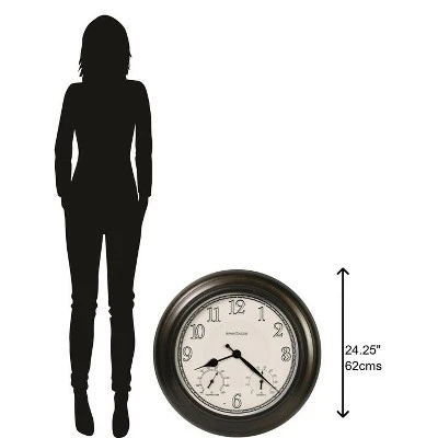 - Indoor and Outdoor Use: Within this outdoor wall clock, the metal, oil-rubbed with bronze evokes hints of the past as it encircles an off-white dial bearing silver Arabic numerals boldly outlined with black. The black hour and minute hands complement the clock. The clock’s light sensor detects darkness, upon which the four LED lights brighten the dial for easy visibility. It then dims in the daylight.