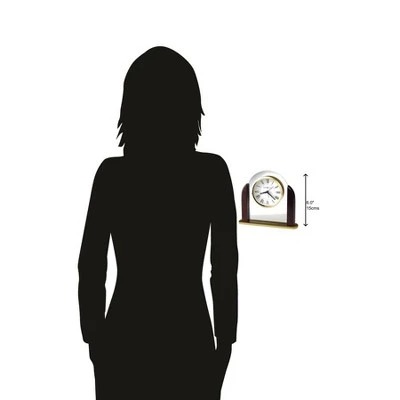 - Roman Numerals: Polished brass-tone bezel surrounds a white dial with black Roman numerals and glass crystal on this clock. The hour and minute hands are black with luminous inserts, making it easier to read in low light. The second hand is black, and the alarm hand is brass.