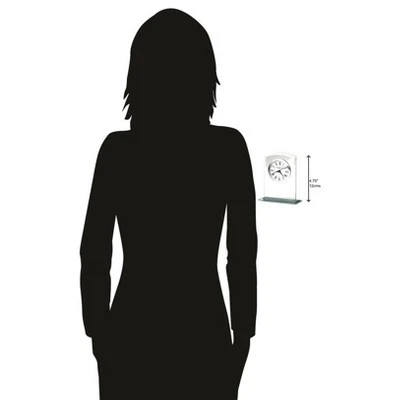 - Tabletop Design: This petite timepiece is crafted from the sturdy beveled glass. Its graceful curved body holds a white dial, which is protected against damage by a break-resistant convex crystal. The glass construction of this analog table clock goes with any type of furniture, whether your preferred style is traditional, modern, or contemporary.