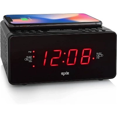 The SXE Digital LED Clock Radio with Wireless Charging and 1 Amp USB Charging Port. Includes FM radio with 10 memory stations allowing you to sleep and wake to the radio. Includes a Dualalarm with 9 minute snooze. This clock is electric powered to keep time moving.