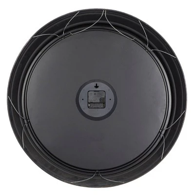 - This decorative round wall clock features a classic beveled-style clock frame and vintage themed wordings/illustration