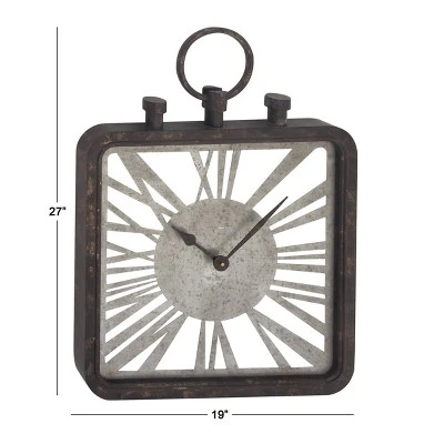 - This vintage-inspired clock features a square shape with an open-style clock face design and a loop ring hanger carving at the top