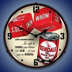 Collectable Sign & Clock | Kendall Motor Oil 2 LED Wall Clock Retro/Vintage, Lighted