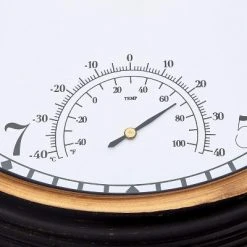 Farmlyn Creek Outdoor Clock and Temperature Gauge Thermometer for Patios, Pools (Black, 12 in)