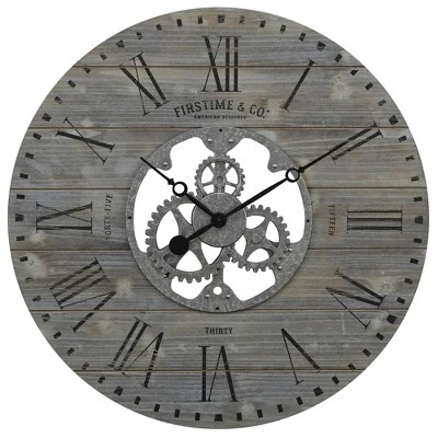 - OVERSIZED – Our FirsTime & Co.® Gray Shiplap Gears Farmhouse Wall Clock has a 27” diameter and 2” depth, making it a great size for any space.