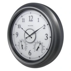 18″ Glass Wall Clock Therm/Hygrometer With LED Silver – AcuRite