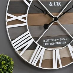 Metal/Wood Spencer Transitional Wall Clock Washed Oak White – StyleCraft