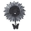 Brighten up any room with this flower wall clock. It’s the perfect addition to your kitchen wall décor. The decorative wall clock is designed to look like a white daisy flower. It brings a touch of the garden to whatever room you hang it in. Those who are fond of butterfly wall décor will appreciate the butterfly pendulum hanging beneath the clock. Assembly required; assembly hardware included. Requires 1 “AA” battery. 11-1/2″W x 14-3/4″L. Metal and plastic.